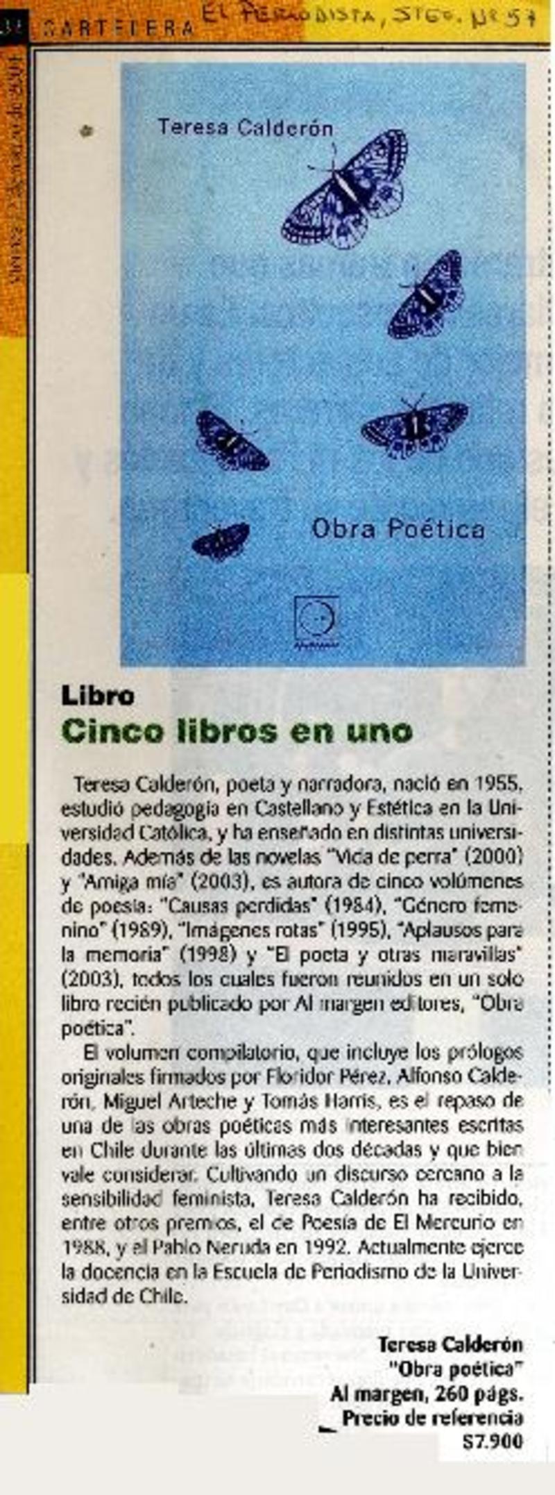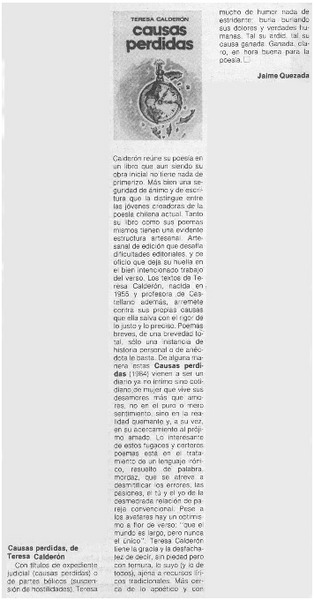 Novela de Teresa Calderón recibe Premio Consejo Nacional del Libro [artículo] Andrés Gómez Bravo.