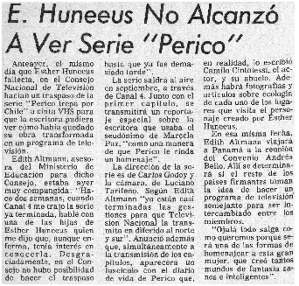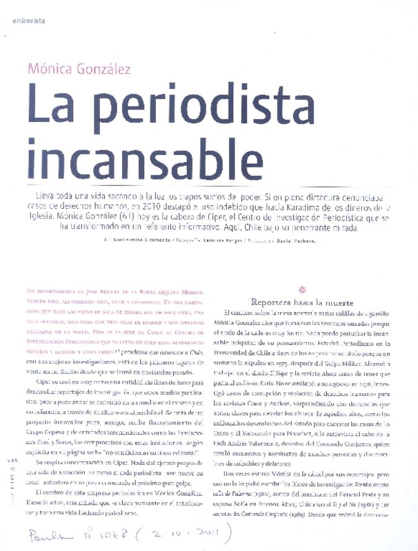 Nuestro Perico era más tacuaco": [entrevista] [artículo] Francisca Aninat.