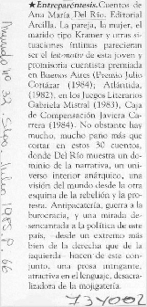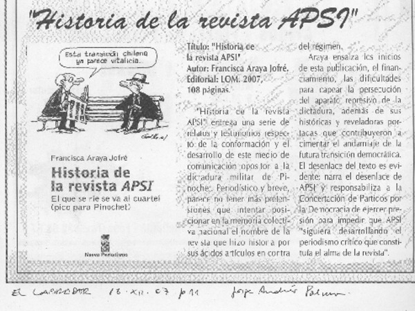 Ajenjo y almibar" [artículo] Adolfo Simpson Trostel.
