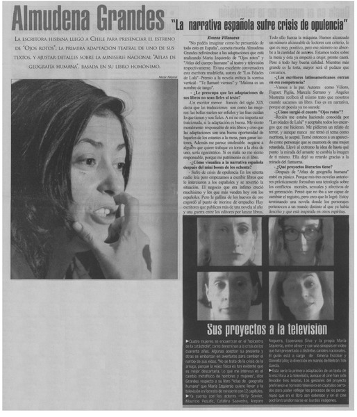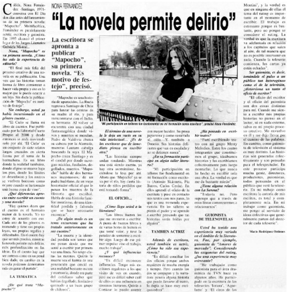 Alejandra Matus debuta en la ficción [entrevista] [artículo] Marcela Fuentealba.