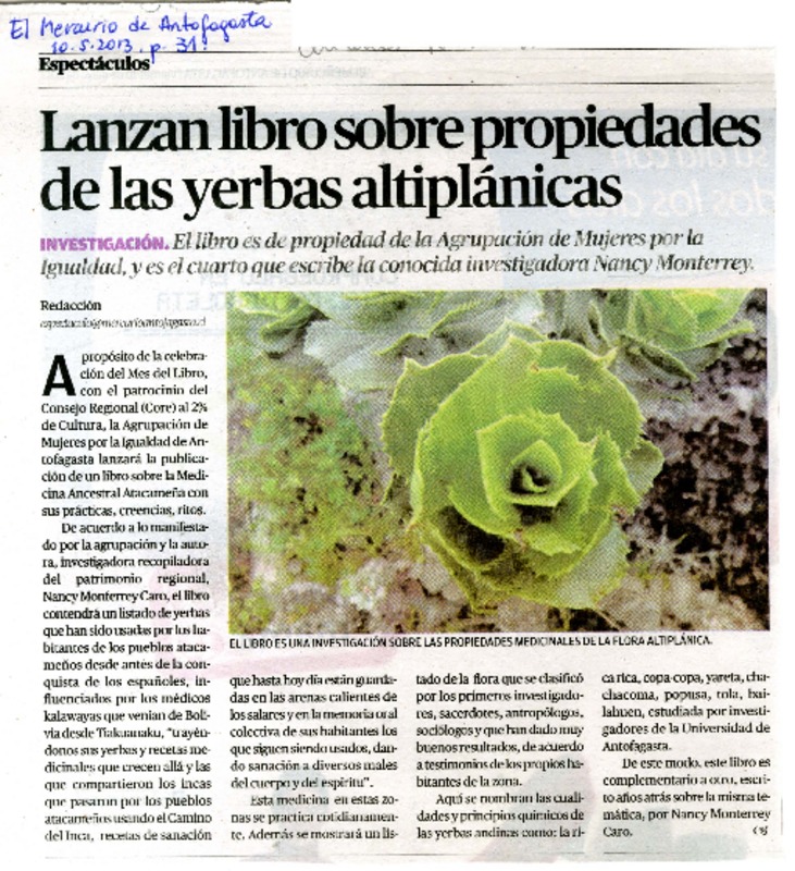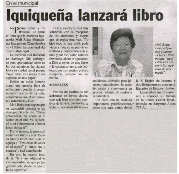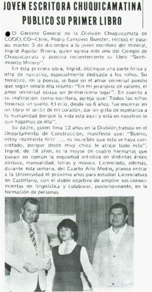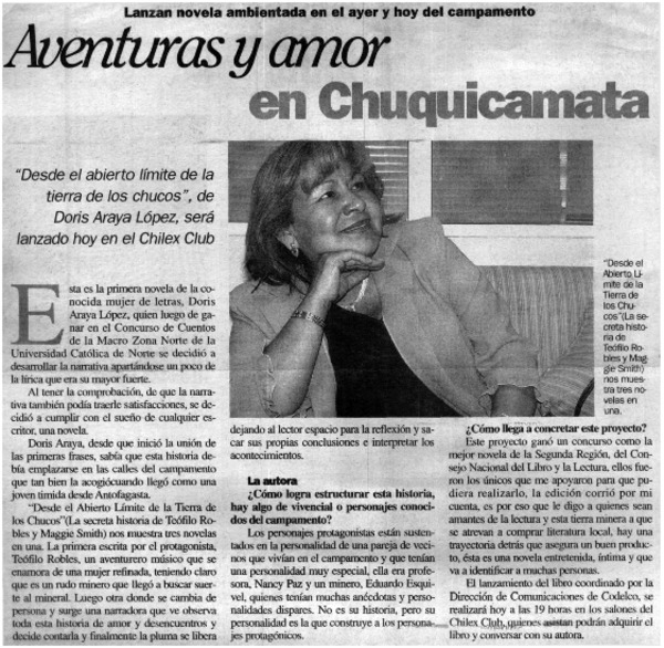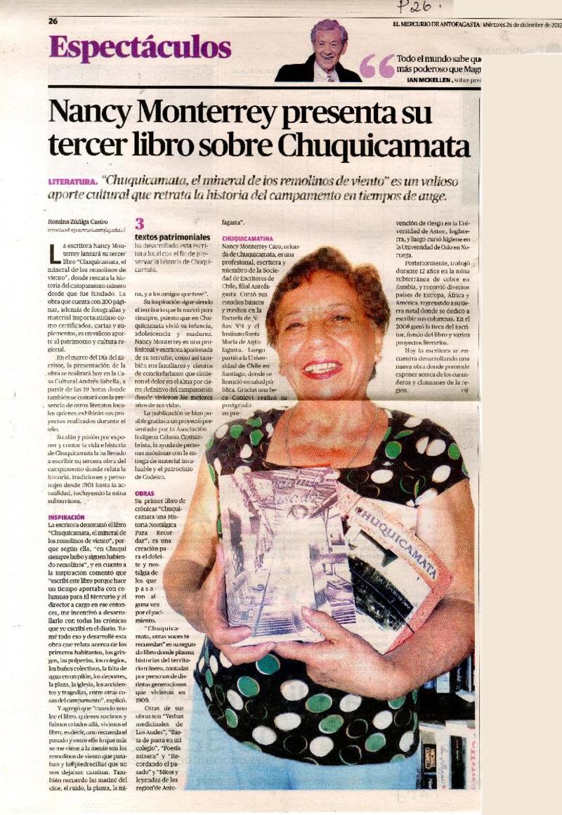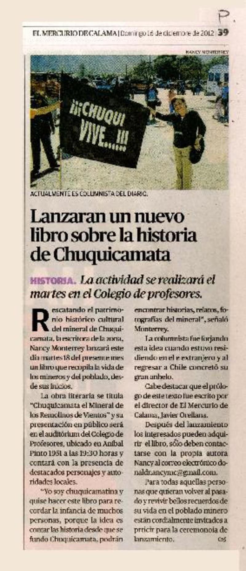 Nancy Monterrey presenta su tercer libros obre Chuquicamata [artículo] Romina Zúñiga Castro.