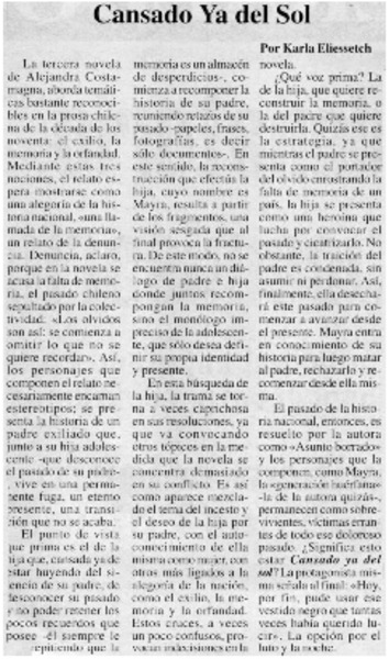 Ningún lugar para el sol de Annamaría Barbera [artículo] Eduardo Baquedano Acuña.