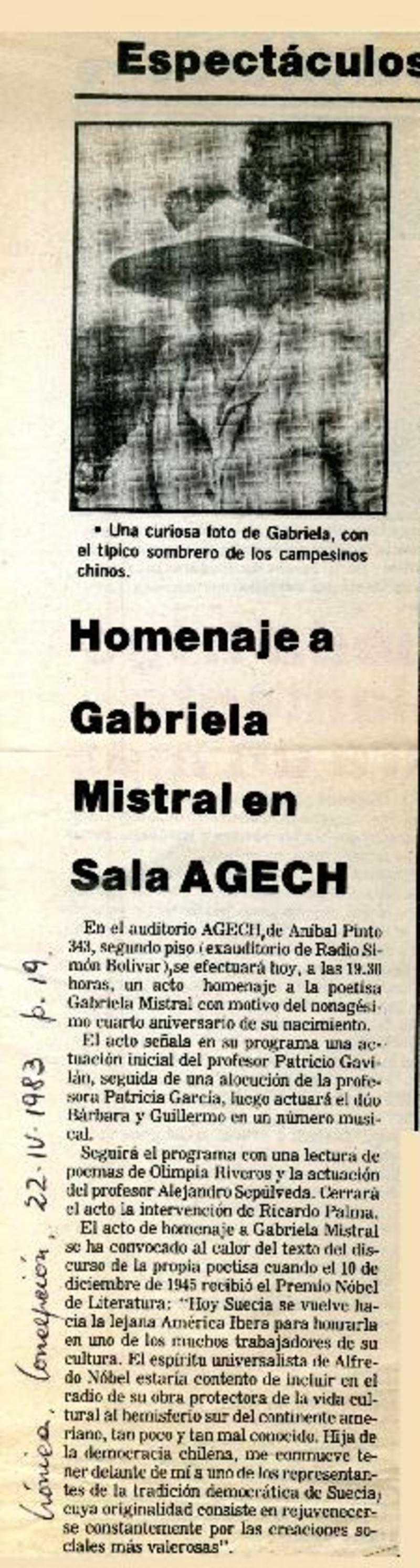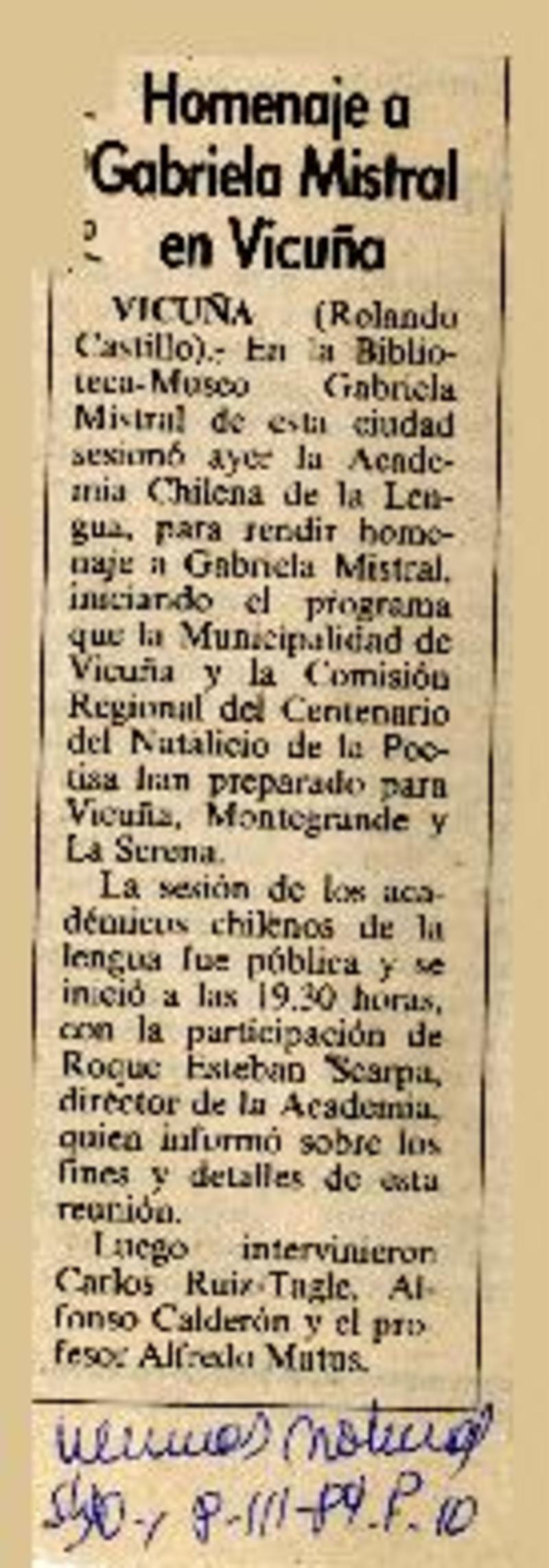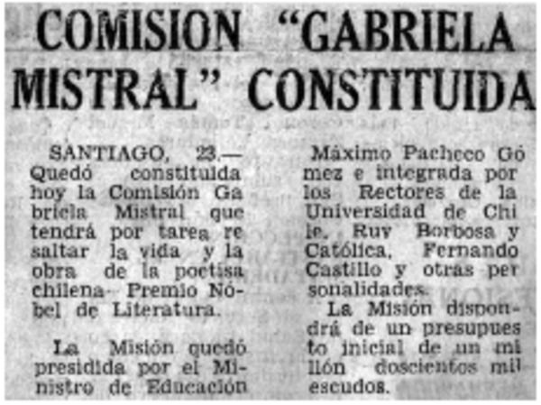 Academia de la Lengua rinde homenaje a Gabriela Mistral [artículo]