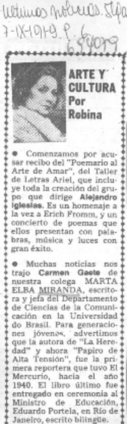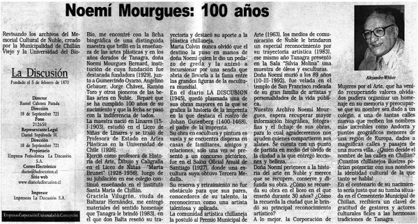 Noemí Mourgues : 100 años [artículo] Alejandro Witker.