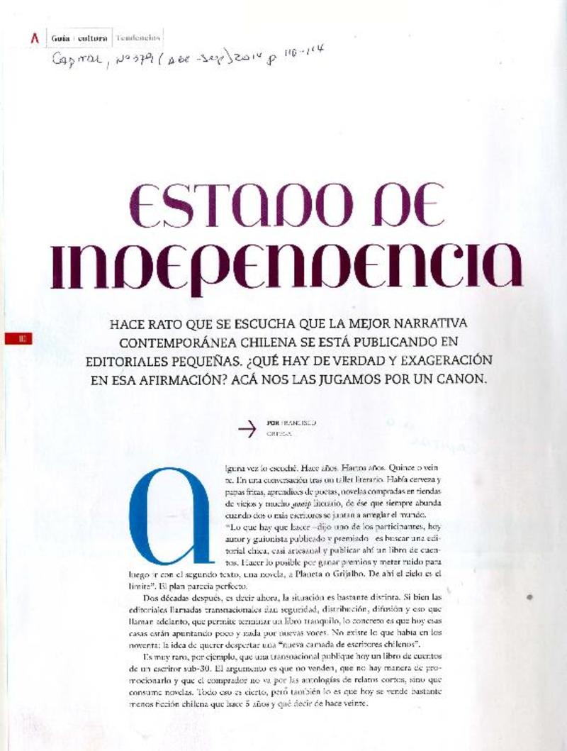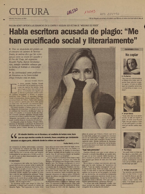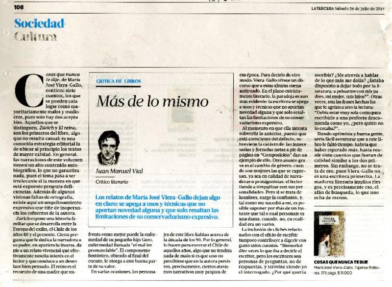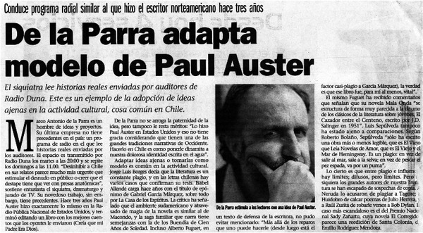 No me comparen con Fuguet" [artículo] Vivian Olivares.