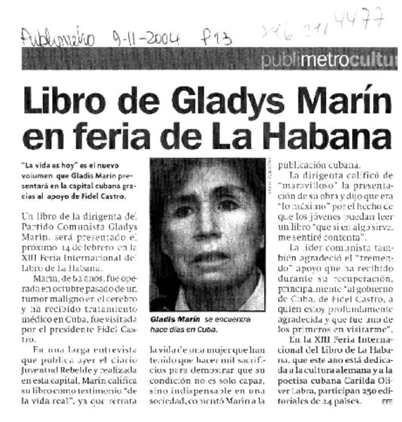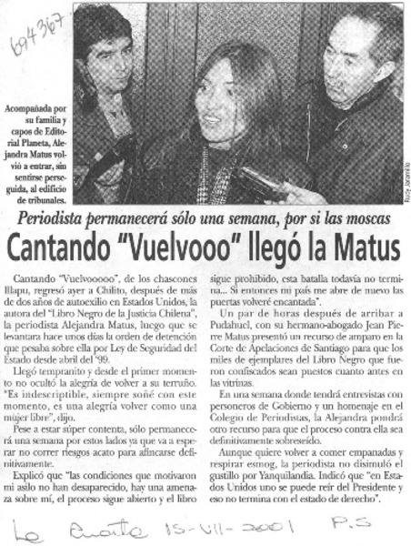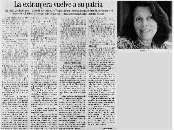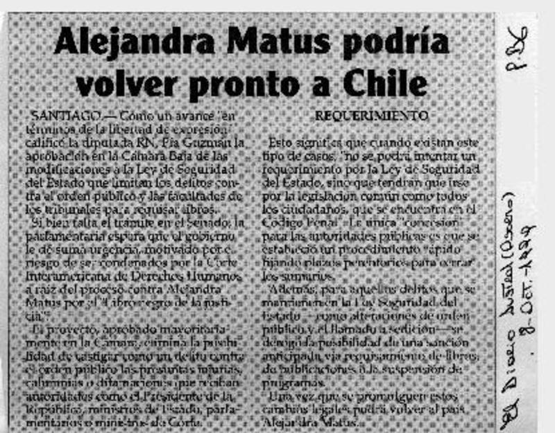 Alejandra Matus podría volver pronto a Chile. [artículo]