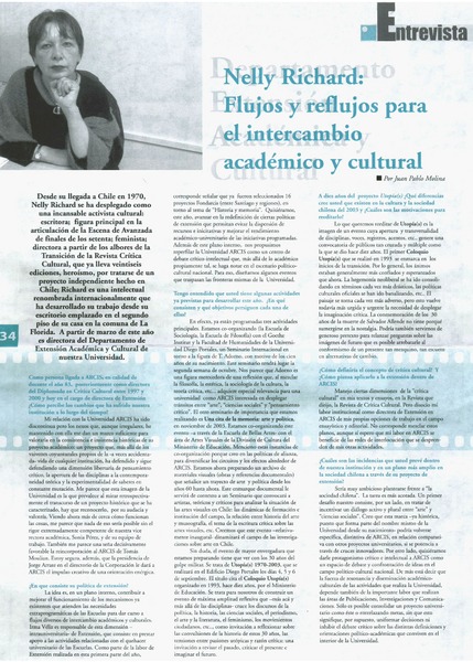 Nelly Richard: flujos y reflujos para el intercambio académico y cultural [artículo] Juan Pablo Molina.