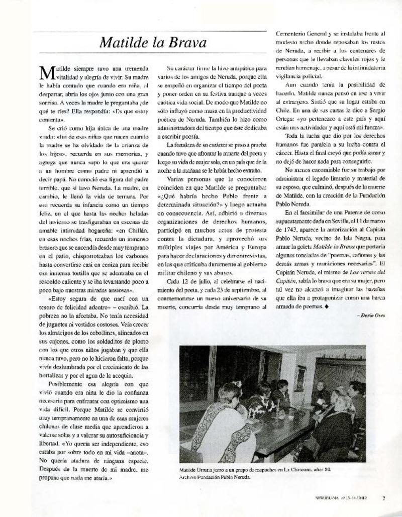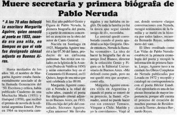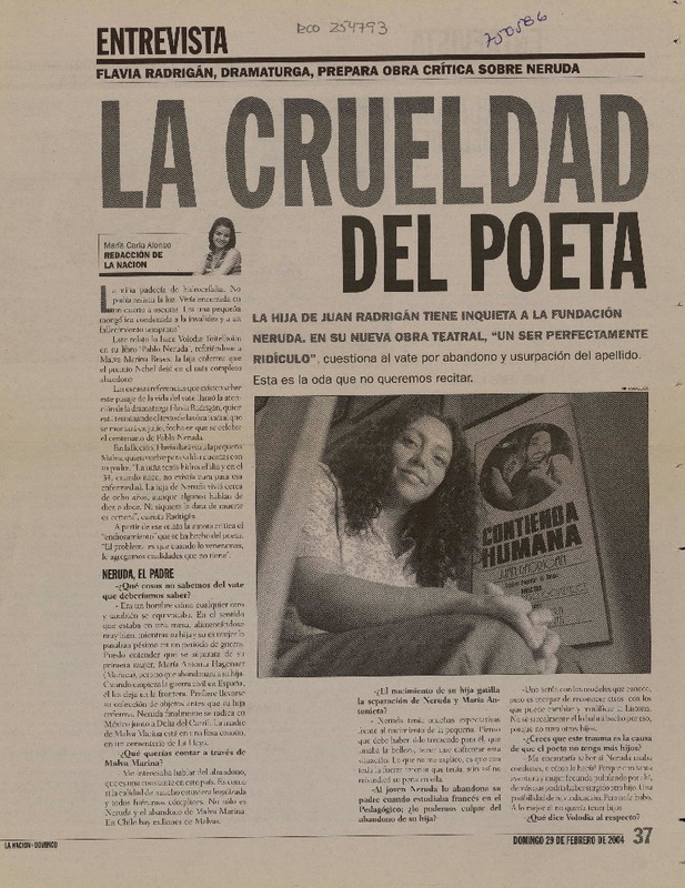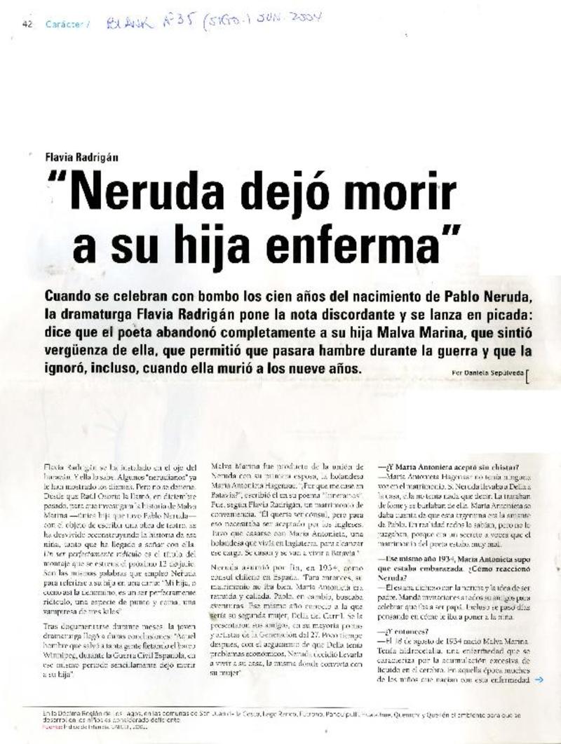 Neruda dejó morir a su hija enferma" [artículo] Daniela Sepúlveda.