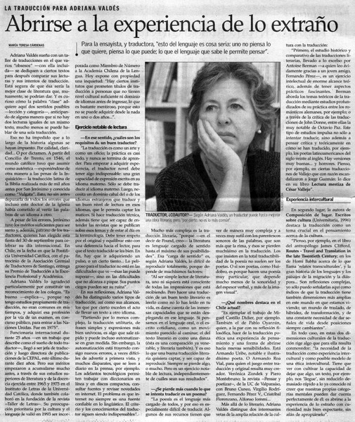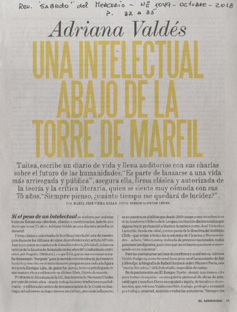 Adriana Valdés una intelectual abajo de la torre de marfil : [entrevista] [artículo] : María José Viera Gallo ; fotos Sergio Alfonso López.