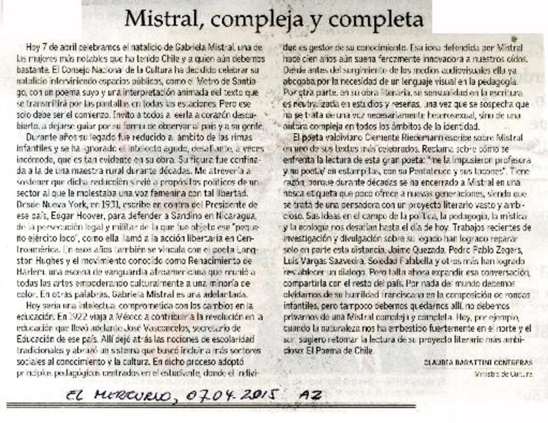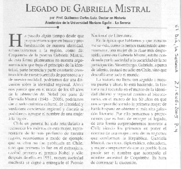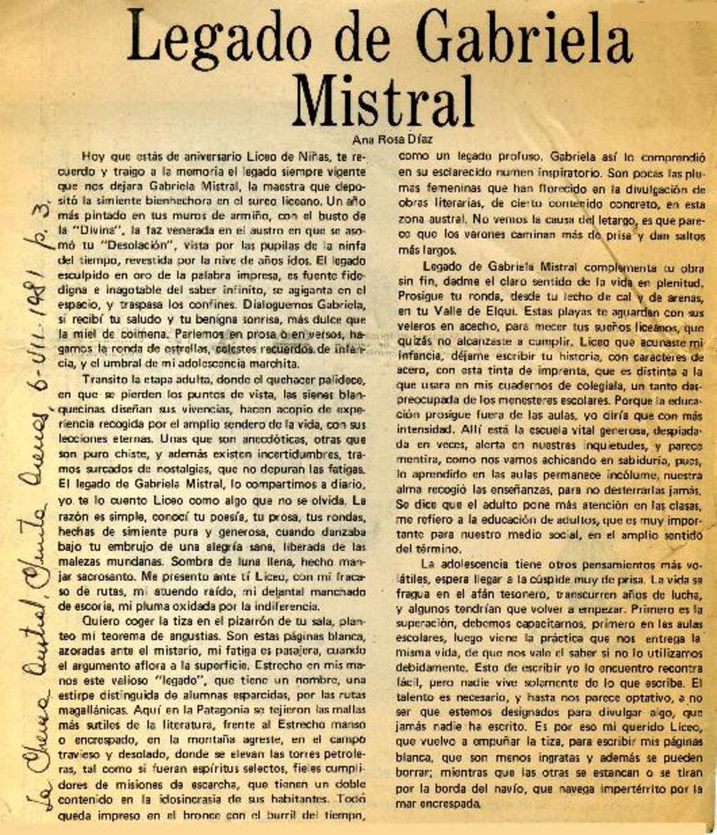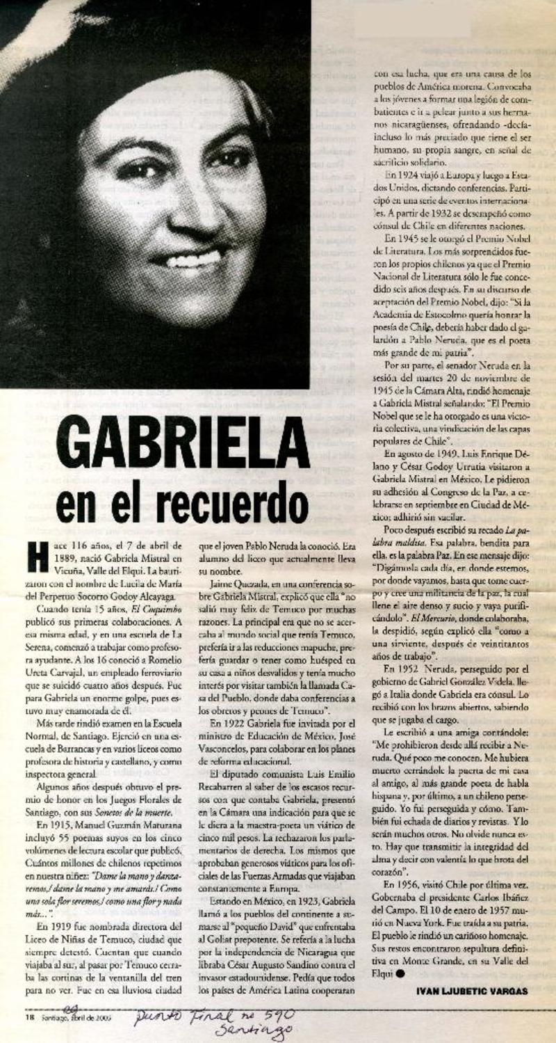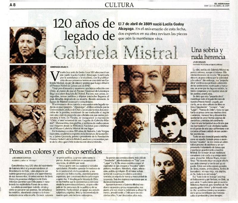 120 años de legado de Gabriela Mistral [artículo] Contanza Rojas V.