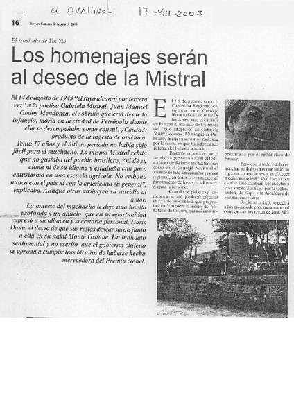 18° aniversario de la muerte de Gabriela Será recordado hoy en Montealegre [artículo] :