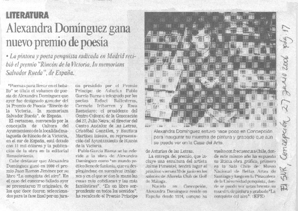 Alexandra Domínguez gana nuevo premio de poesía [artículo].