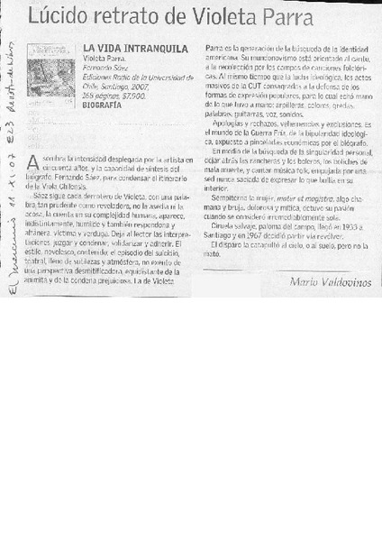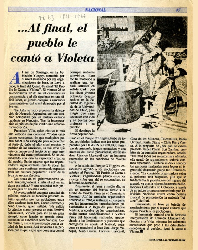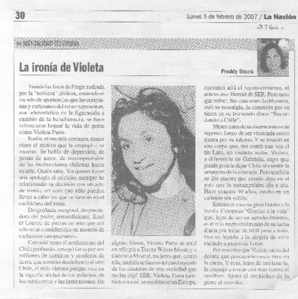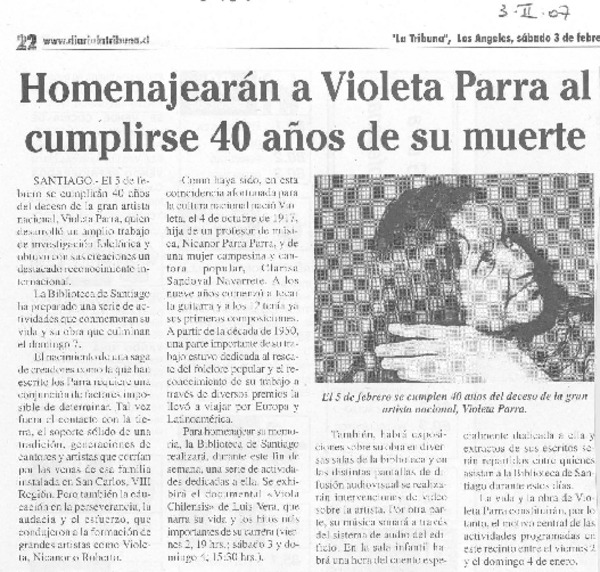 5 de febrero... muerte de Violeta Parra [artículo] Juan Meza Sepúlveda.