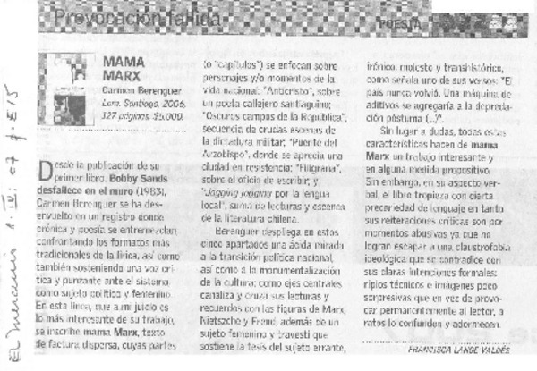 Nuestra señora de la soledad [artículo] Francisca Lange.