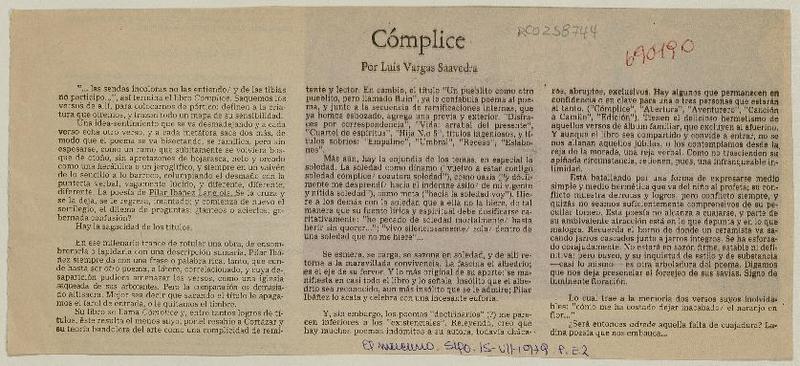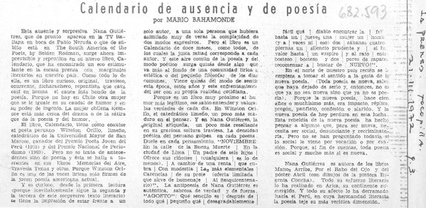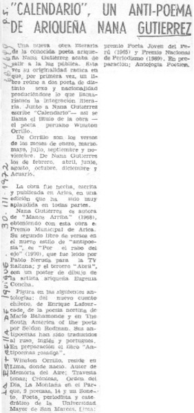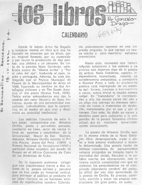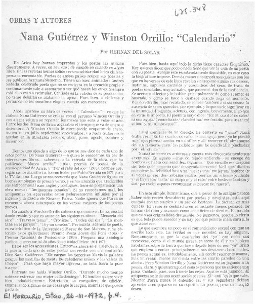 Nana Gutiérrez y Winston Orrillo: "Calendario" [artículo] Hernán del Solar.