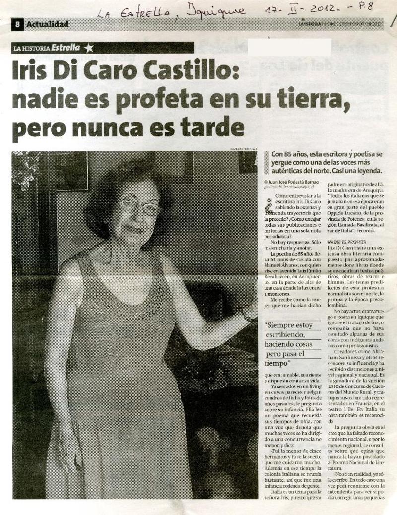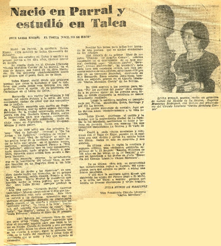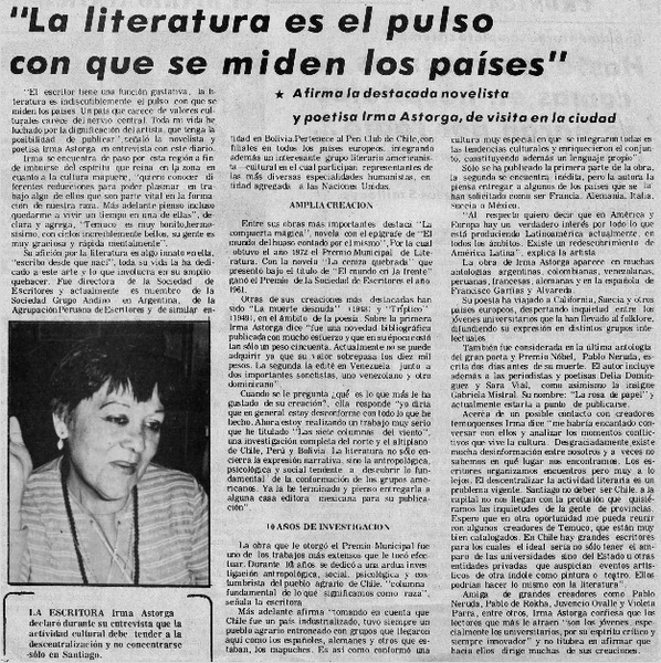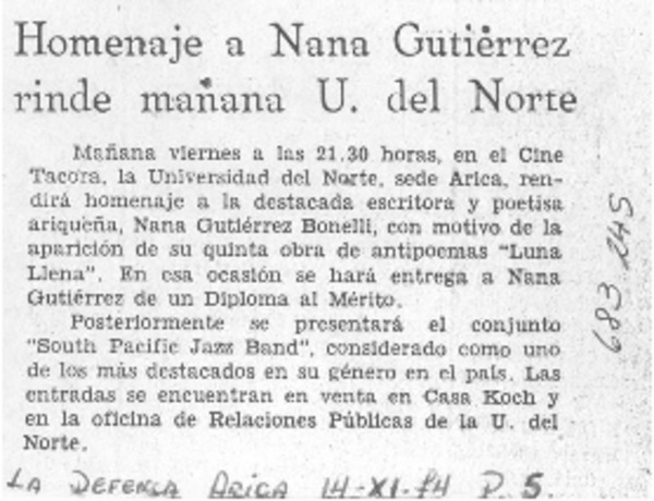 Nana Gutiérrez escogida por Pablo Neruda como la poetisa del norte chileno. [artículo]