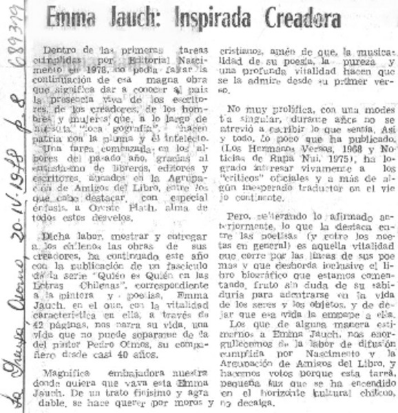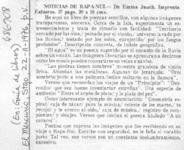 Noticias de Rapa-Nui de Emma Jauch [artículo] Pedro Parra Avello.