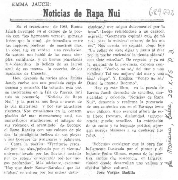 Noticias de Rapa Nui [artículo] José Vargas Badilla.