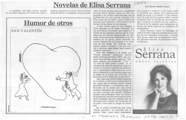 Novelas de Elisa Serrana [artículo] Marino Muñoz Lagos.