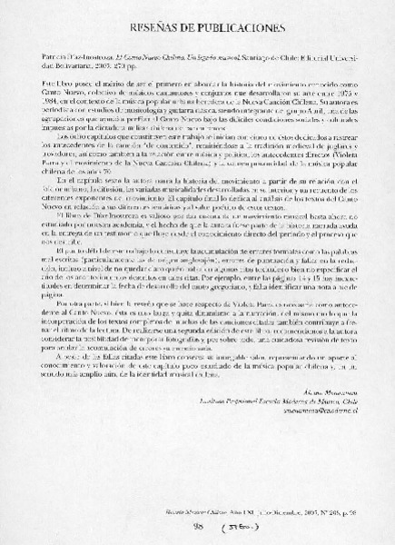 Nora Fernández de "alcurnia y bocina" [artículo] Rodrigo Ramos.