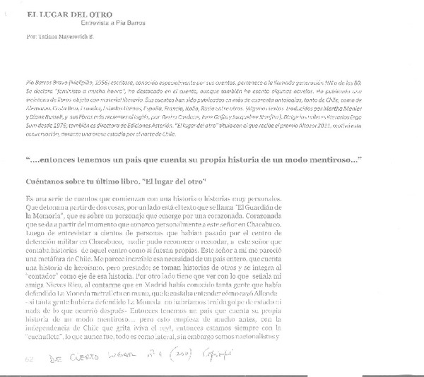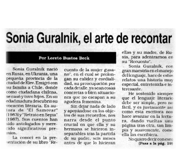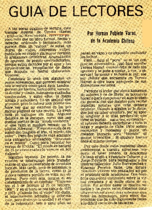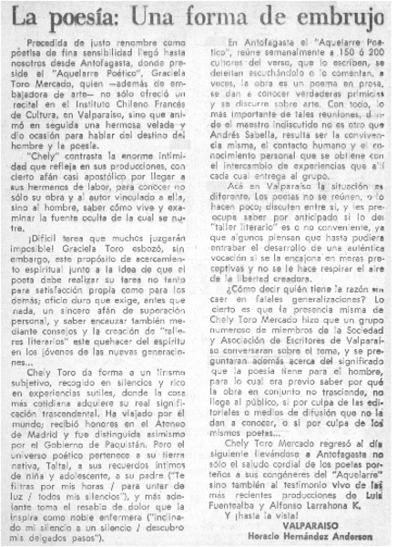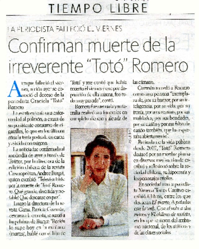 Noticias incompleta sobre Graciela Toro [artículo] Pablo García.