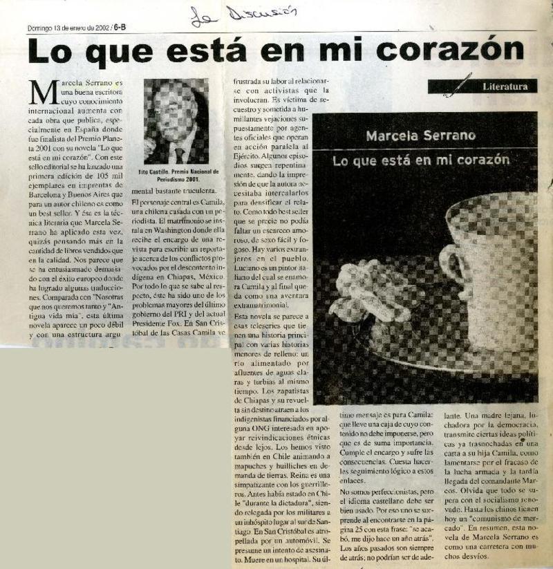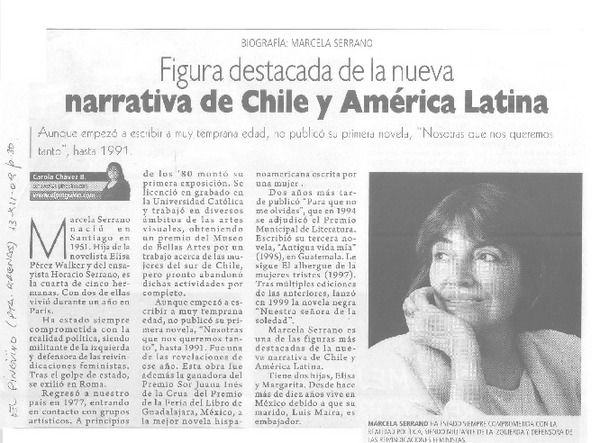 Novela de Marcela Serrano se lanza en italiano [artículo] Carolina Andonie Dracos.