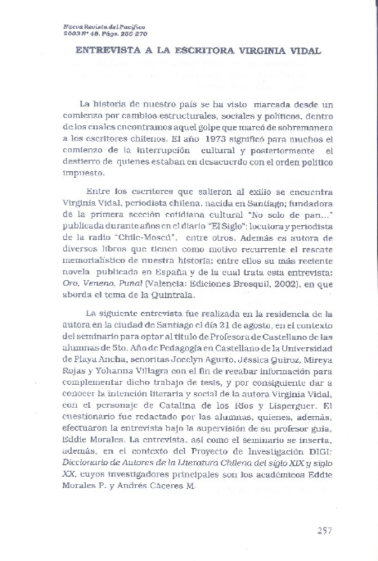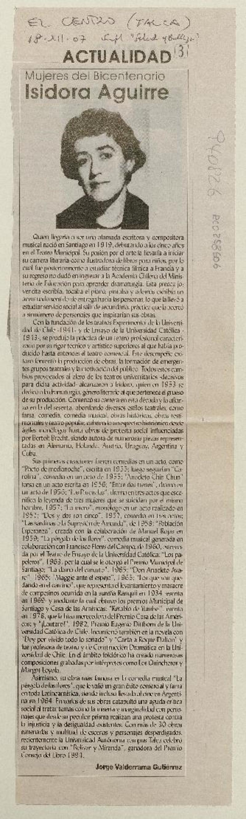 Narrativa de Isidora Aguirre [artículo] Virginia Vidal.