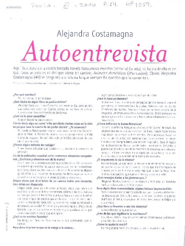 Alejandra Costamagna vuelve a Retiro (entrevista) [artículo] Diego Zúñiga.