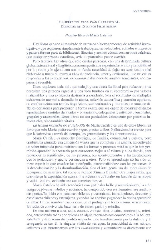 Nuestro libro de María Catrileo [artículo] Iván Carrasco M.