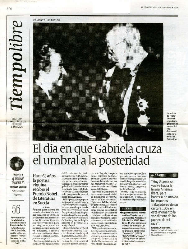 A 60 años de la entrega del Premio Nobel a Gabriela Mistral [artículo]