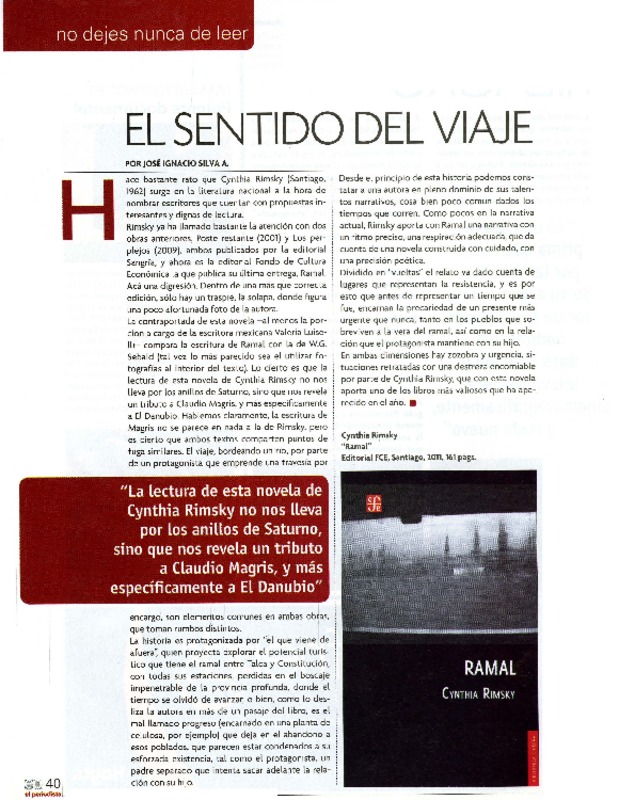 Novelas de Cinthya Rimsky [artículo] Jorge Guzmán.