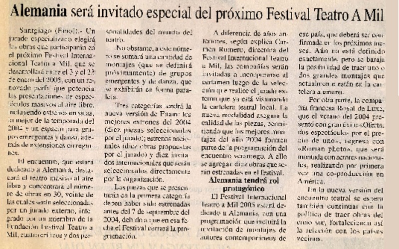 Alemania será invitado especial del próximo Festival Teatro A Mil. [artículo]