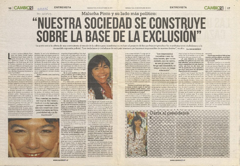 Nuestra sociedad se construye sobre la base de la exclusiòn (entrevista) [artículo] Oscar Reyes P.