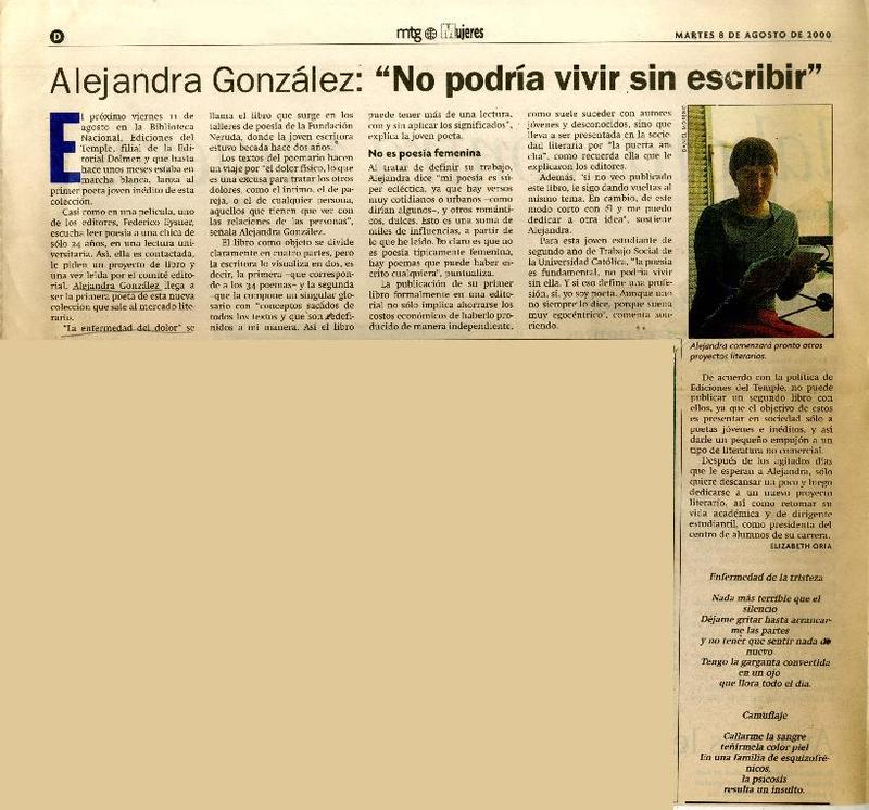 Alejandra González: "No podría vivir sin escribir" [artículo]