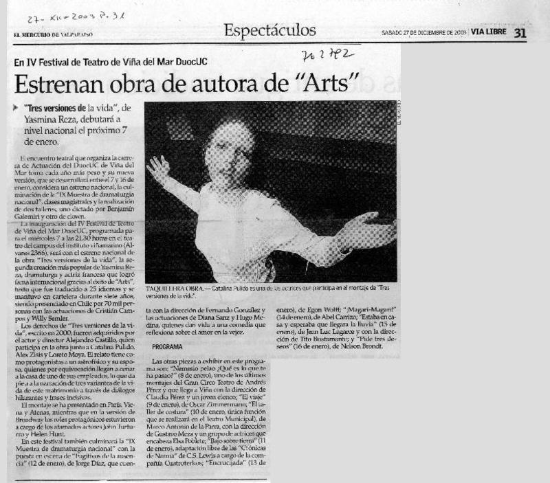 Actriz Carolina Paulsen estrena en Viña obra sobre el cáncer que le afectó [artículo] Flor Arbulú