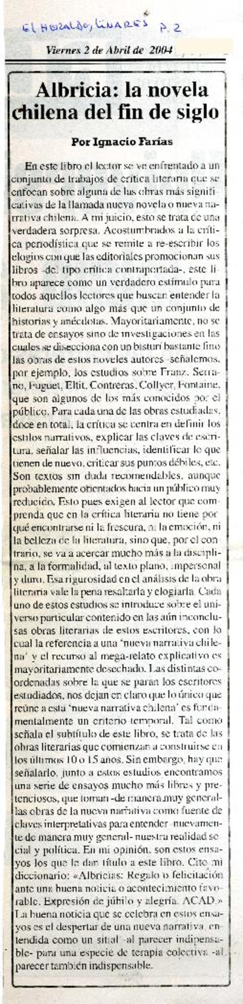 Albricia : la novela del fin de siglo [artículo] Ignacio Farías.