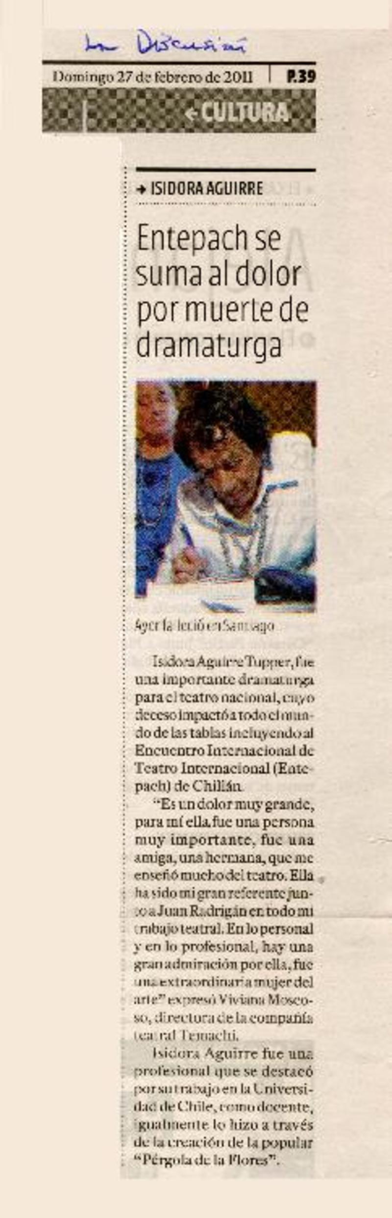 Adios a Brisolia Herrera, ìcono del teatro penquista [artículo] Alvaro Peña Saavedra.