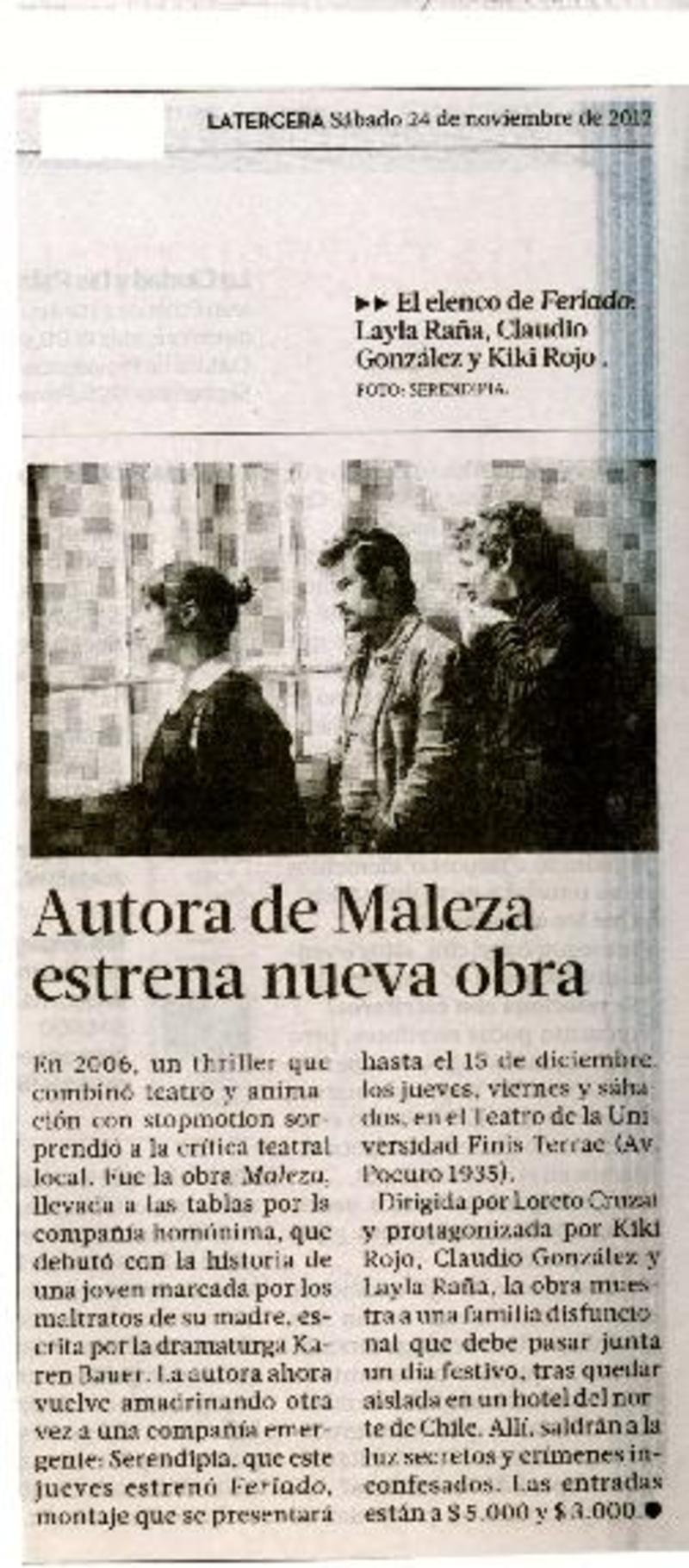 Nona Fernández, la nueva gurú del teatro en Iquique [artículo] Rodrigo Ramos.