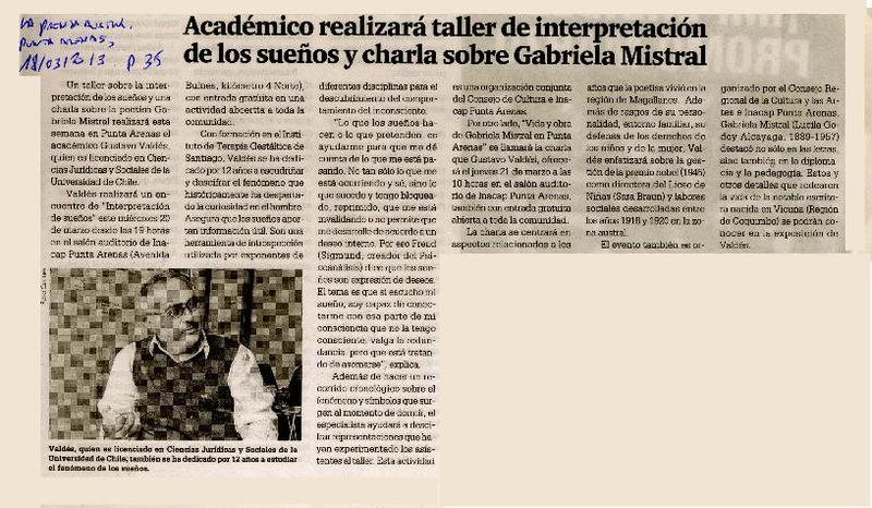 Académico realizará taller de interpretación de los sueños y charla sobre Gabriela Mistral [artículo]