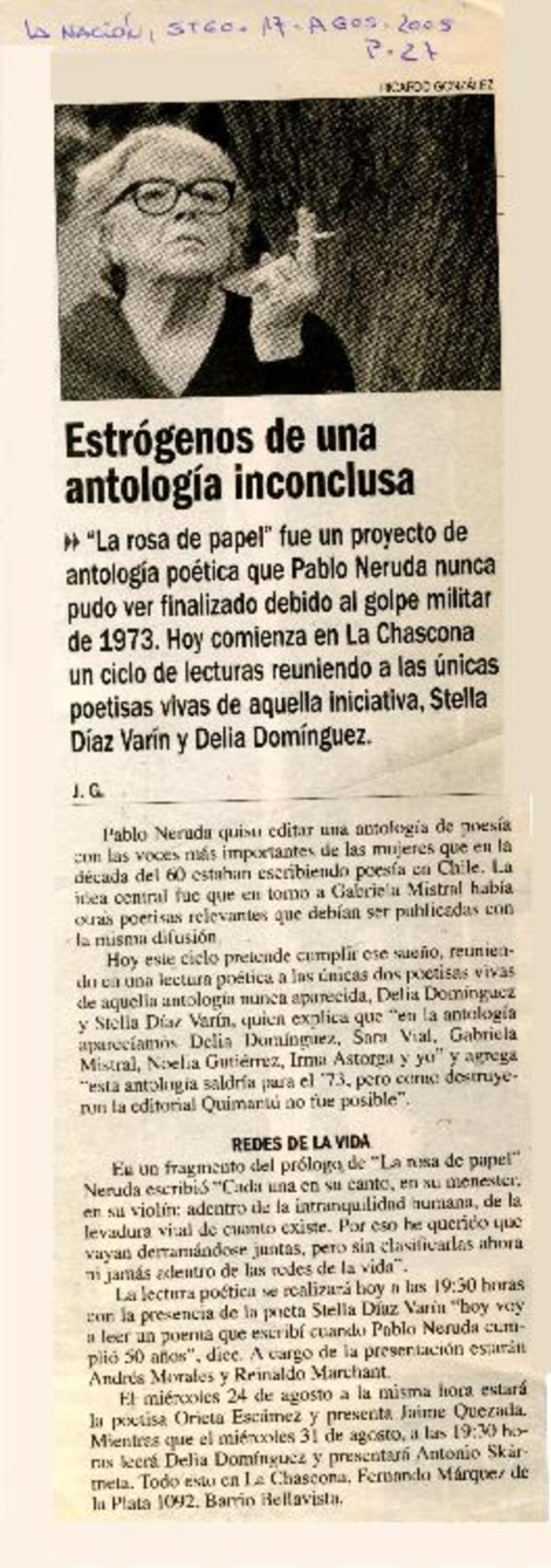 Nana Gutiérrez y la antipoesía (I) [artículo] Oscar Hahn.