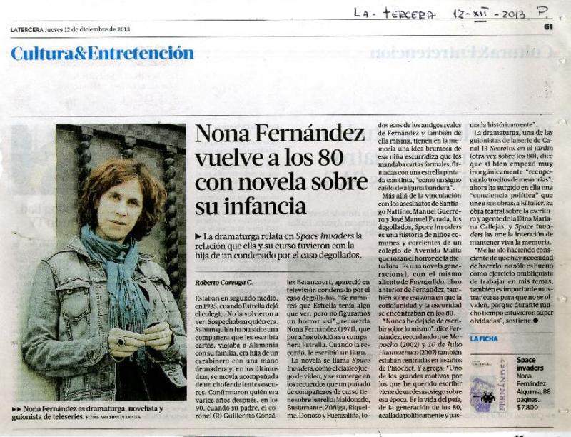 Nona Fernández vuelve a los 80 con novela sobre su infancia [artículo] Roberto Careaga C.