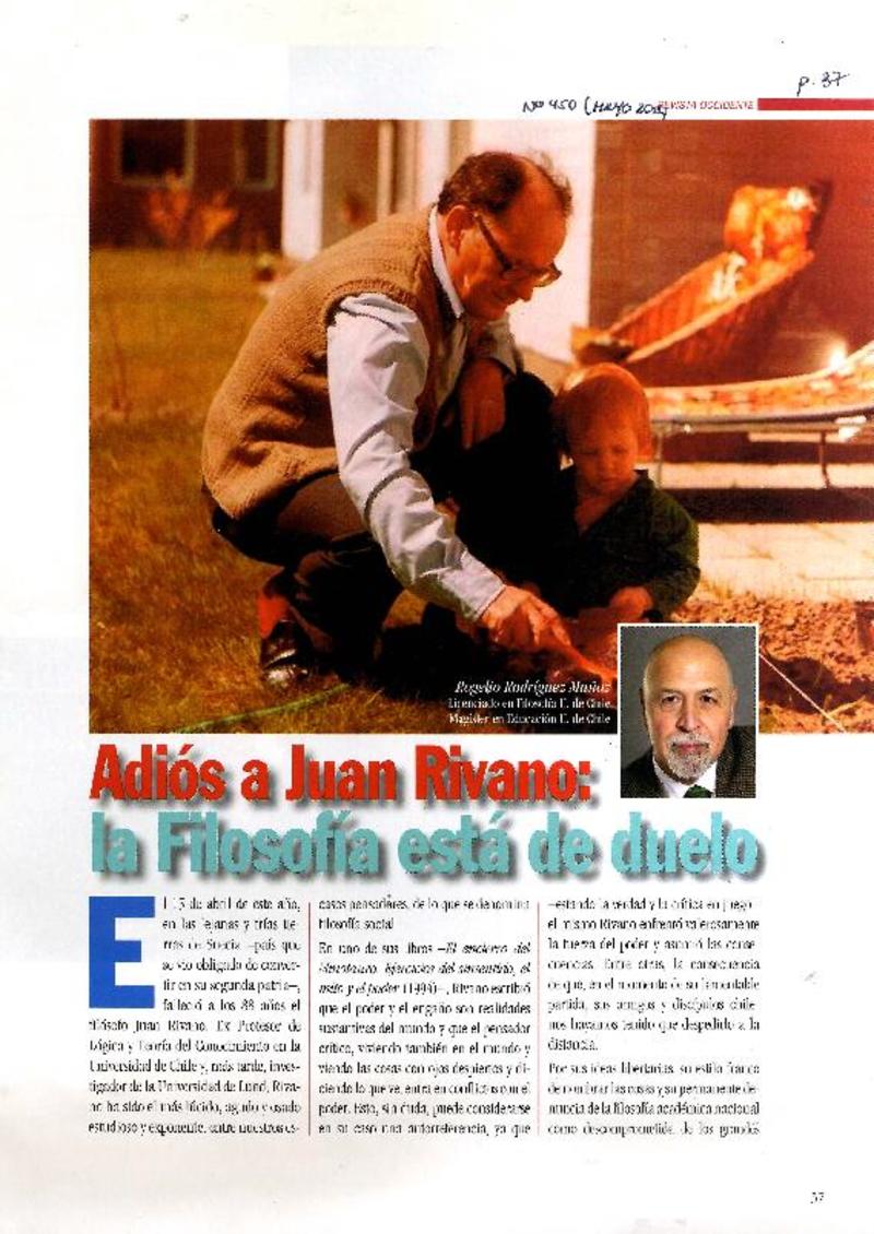 Adiós a Juan Rivano: la filosofía está de duelo. [artículo] Rogelio Rodríguez Muñoz.