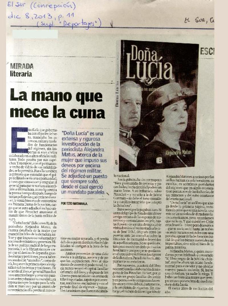 Alejandra Matus, autora de "Doña Lucía": "Vivo todos los días como si fuera el último" [artículo] Patricio Sesnich Jr.
