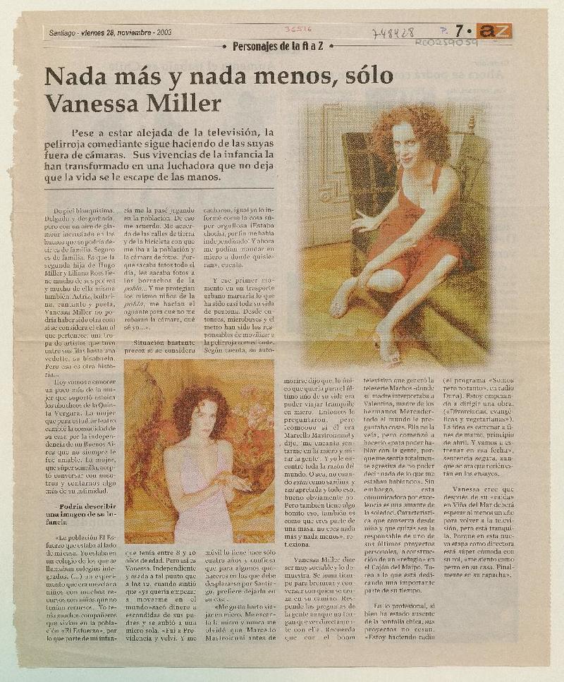 Nada más y nada menos, sólo Vanessa Miller : [entrevistas] [artículo]