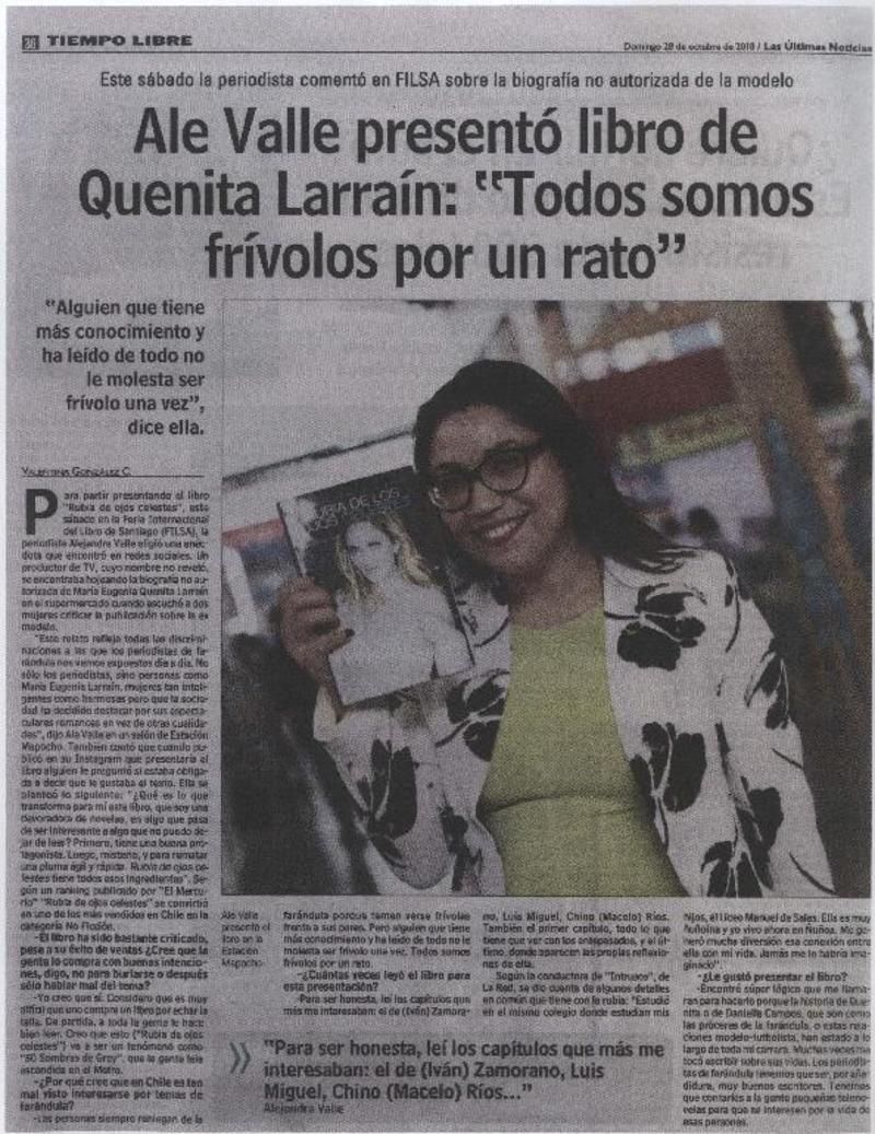 Ale Valle presentó libro de Quenita Larraín "todos somos frívolos por un rato" [artículo] : Valentina González C.