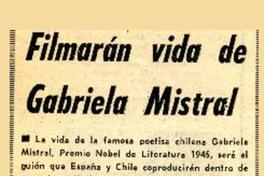 Filmarán vida de Gabriela Mistral [artículo] La Segunda (Santiago, Chile)-- mar. 5, 1975, p. 21. .