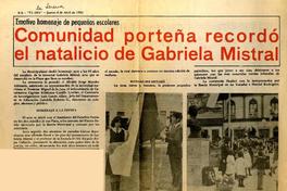 Comunidad porteña recordó el natalicio de Gabriela Mistral emotivo homenaje de pequeños escolares [artículo] :