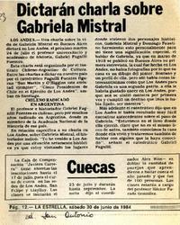 Dictarán charla sobre Gabriela Mistral [artículo] La Estrella (San Antonio, Chile)-- jun. 30, 1984, p. 12. .