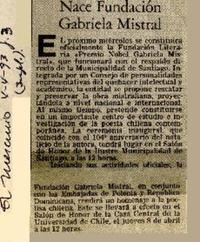 Nace fundación Gabriela Mistral [artículo]