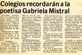 Colegios recordarán a la poetisa Gabriela Mistral [artículo]